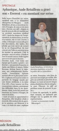 Mon everest ce seul en scène de 40 mn parle de l'histoire d'Aude victime d'un AVC et qui depuis vit avec une aphasie. Après avoir écrit son histoire elle m'a demandé de la mettre en scène.